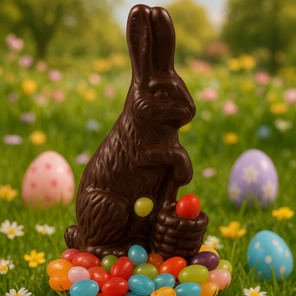 “Beau” Bunny is a solid 70% vegan dark chocolate bunny, decorated with fruit juice-sweetened organic jelly beans. Freshly made and beautifully packaged just for you!Weight: 4.4 oz