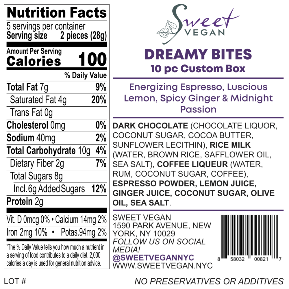 Energizing Espresso: dark chocolate, rice milk, coconut sugar, cacao butter, espresso, coffee liqueur, sea salt
