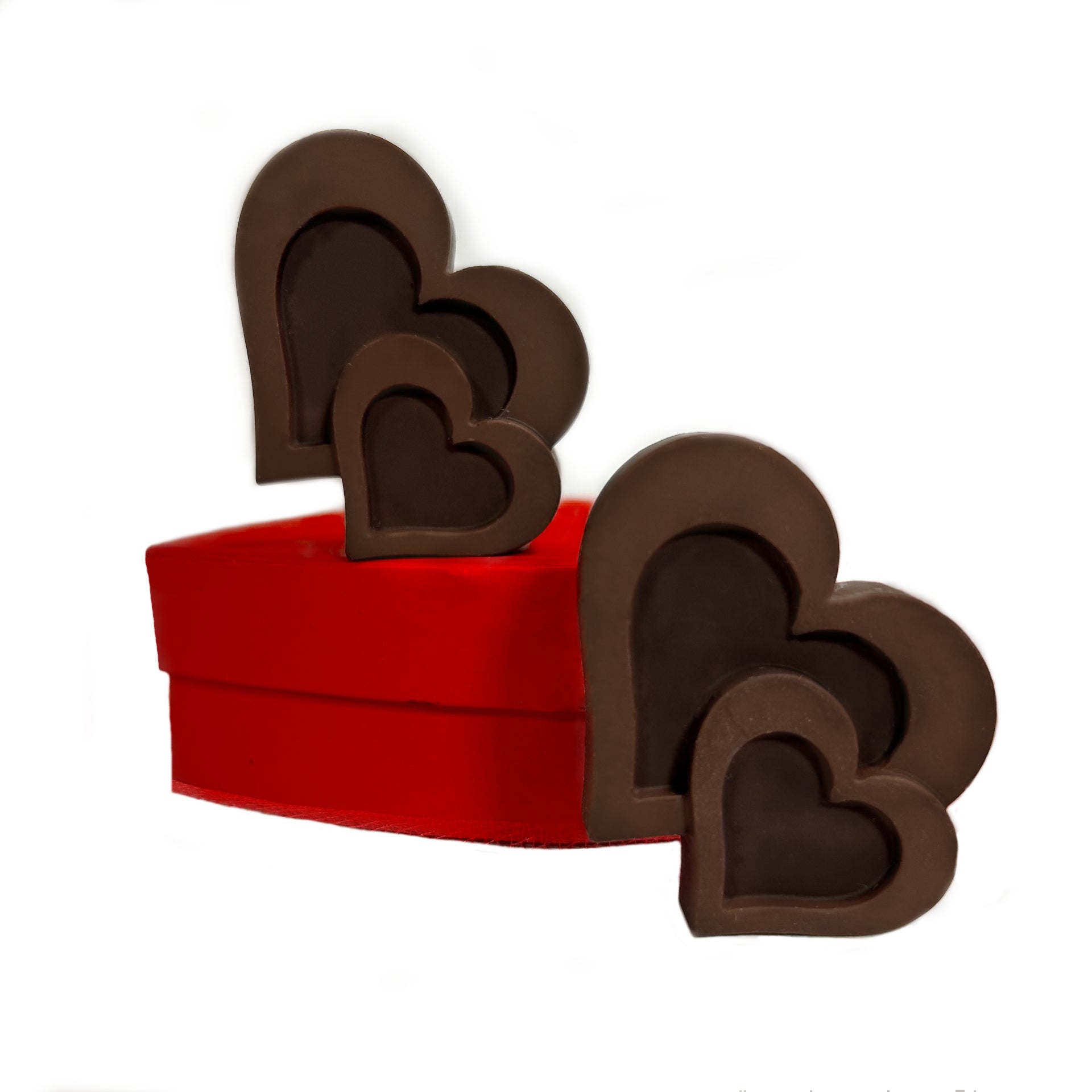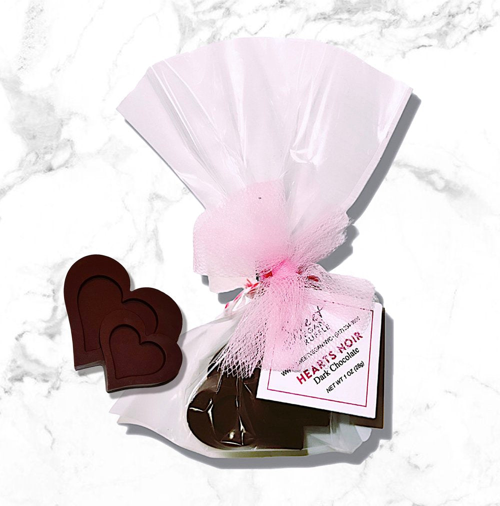 Indulge in Love this Valentine's Day with Hearts Noir, our decadent treat for chocolate lovers. Made with the finest dark chocolate, it offers a rich, intense flavor and silky smooth texture. This luxurious chocolate will tantalize your taste buds, it's the ultimate expression of love. The red box is not included.