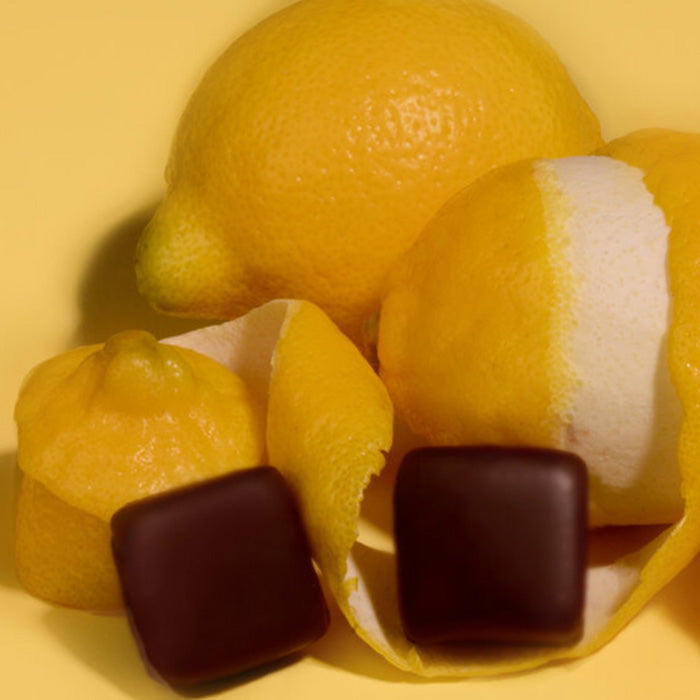 Sweet, tangy and aromatic Meyer lemons, subtly blended into a smooth, velvety ganache and covered in a layer of rich dark chocolate. There’s nothing sour about these lemons.