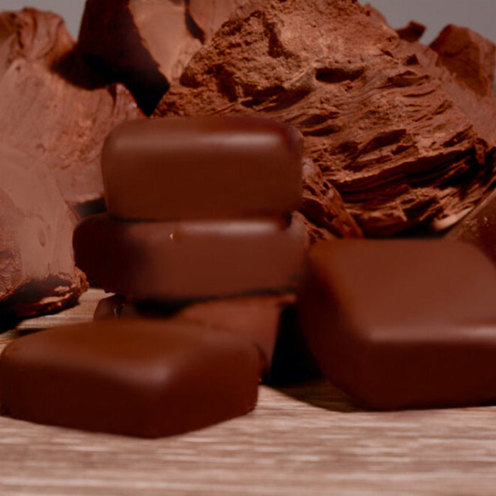 Tropical sunshine will greet you with your first bite of our Orange Blossom. A delicate blend of rich dark chocolate ganache with refreshing citrus will brighten your day.