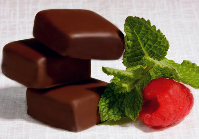 Very ripe, sweet raspberry flavor is added to our dark luxurious chocolate. Together the acidity of the fruit is balanced by the rich robust notes of the chocolates. Vibrant and beautiful the red raspberry is a powerhouse of fiber, vitamins, and minerals. Raspberries represent genuine kindness and fragility.